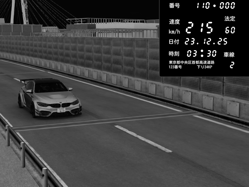 | 2025/12/23 03:30 | K1上り 羽田 | 215 / 60 km/h | Player | BMW M4 crash.Sp Varis Widebody | CAPTURE |