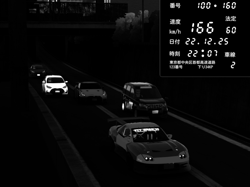 | 2025/12/22 22:09 | C1内回り 竹橋JCT | 126 / 60 km/h | Ahoge | Pit Road M - Mitsubishi GTO Twin Turbo | CAPTURE |
