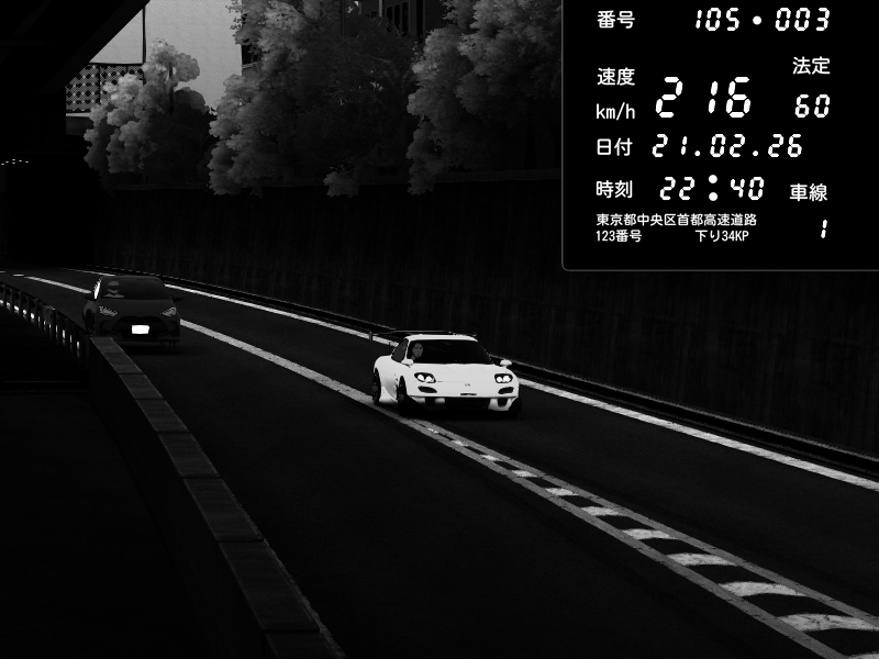 | 2026/02/21 22:40 | C1外回り 京橋 | 216 / 60 km/h | Mazda RX-7 FD3S RE Amemiya | CAPTURE |
