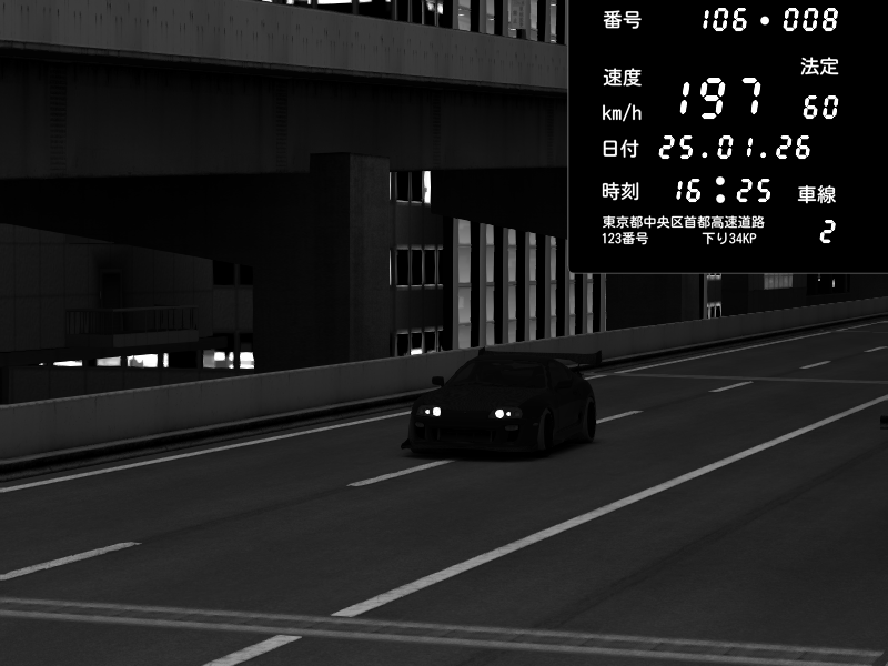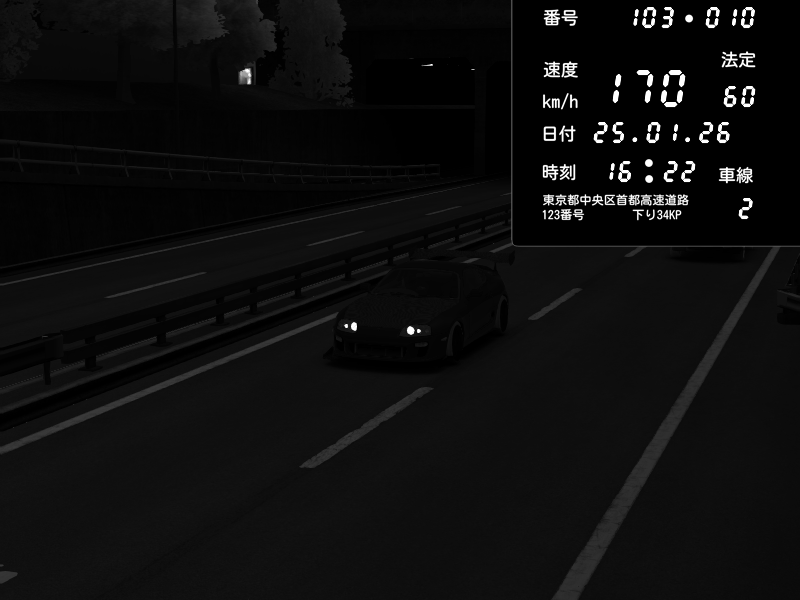 | 2026/01/25 16:22 | C1内回り 銀座 | 170 / 60 km/h | Toyota Supra MKIV Time Attack | CAPTURE |