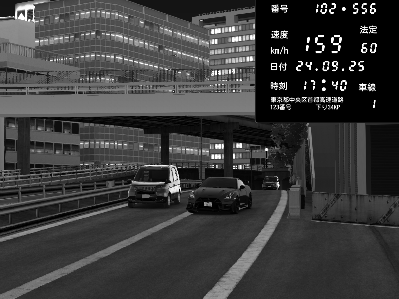 | 2025/09/24 17:59 | C1内回り 竹橋JCT | 180 / 60 km/h | Nissan GT-R NISMO 2017 | CAPTURE |