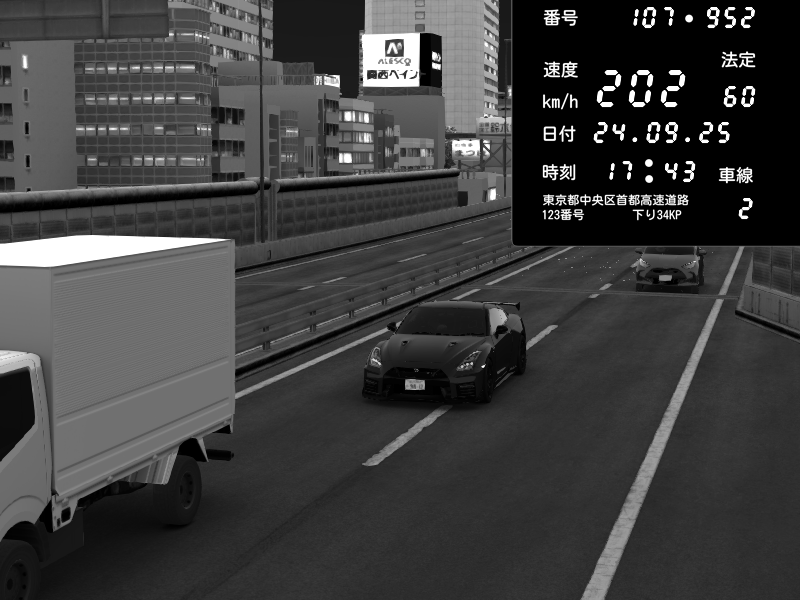 | 2025/09/24 17:40 | C1外回り 京橋 | 197 / 60 km/h | Nissan GT-R NISMO 2017 | CAPTURE |