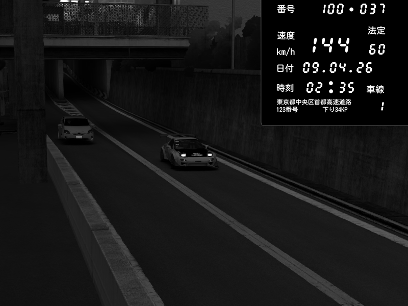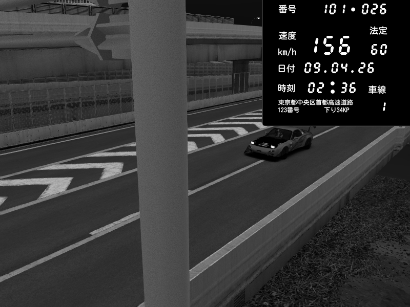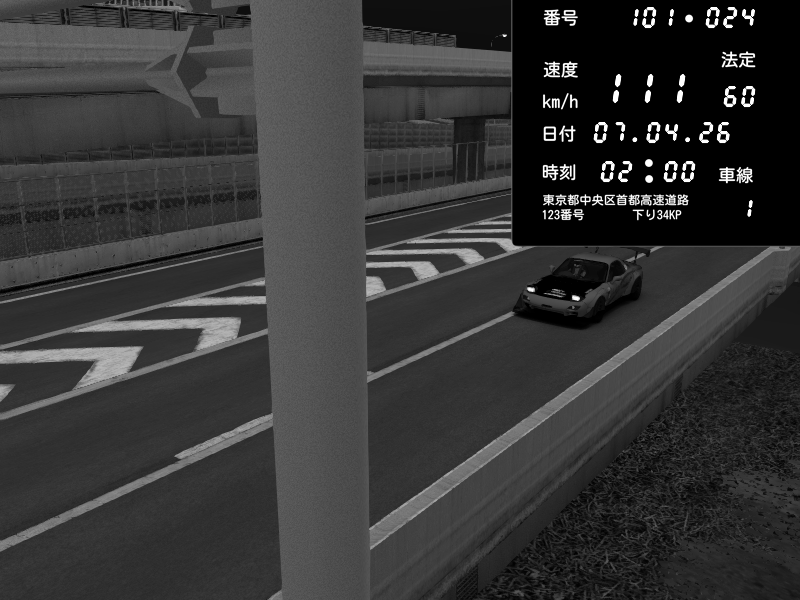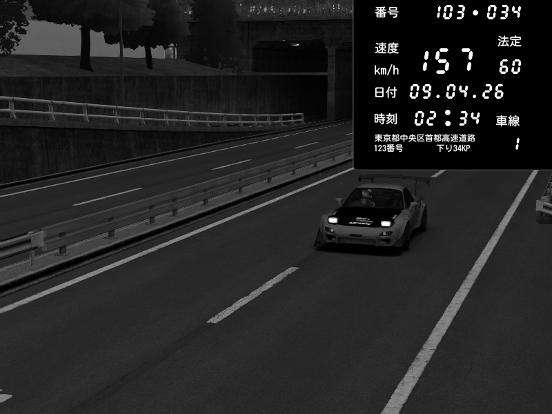 | 2026/04/07 02:00 | C1内回り 竹橋JCT | 111 / 60 km/h | Mazda RX-7 FD3S FEED Afflux GT3 | CAPTURE |