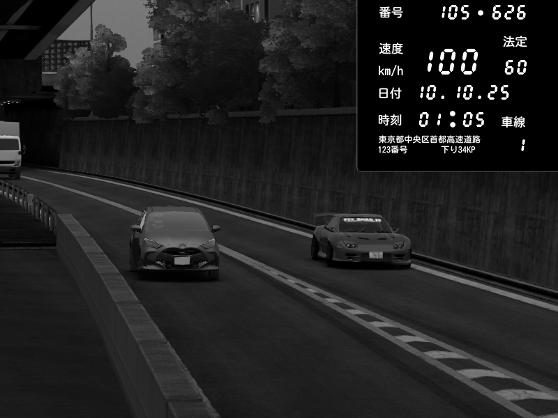 | 2025/10/10 01:05 | C1外回り 京橋 | 100 / 60 km/h | Pit Road M - Mitsubishi GTO Twin Turbo | CAPTURE |