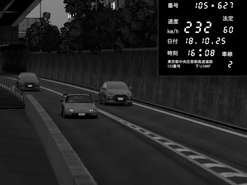 | 2025/10/18 16:20 | C1外回り 京橋 | 256 / 60 km/h | Honda S2000 (AP2 - Legendary) | CAPTURE |