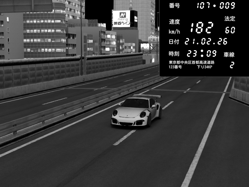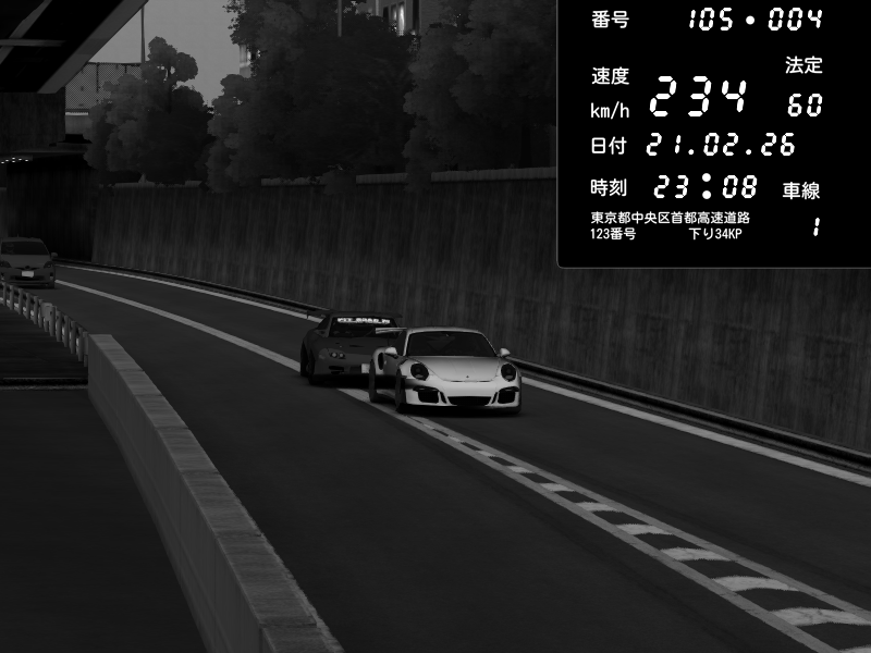 | 2026/02/21 23:08 | C1外回り 京橋 | 234 / 60 km/h | Porsche 911 GT3 RS | CAPTURE |