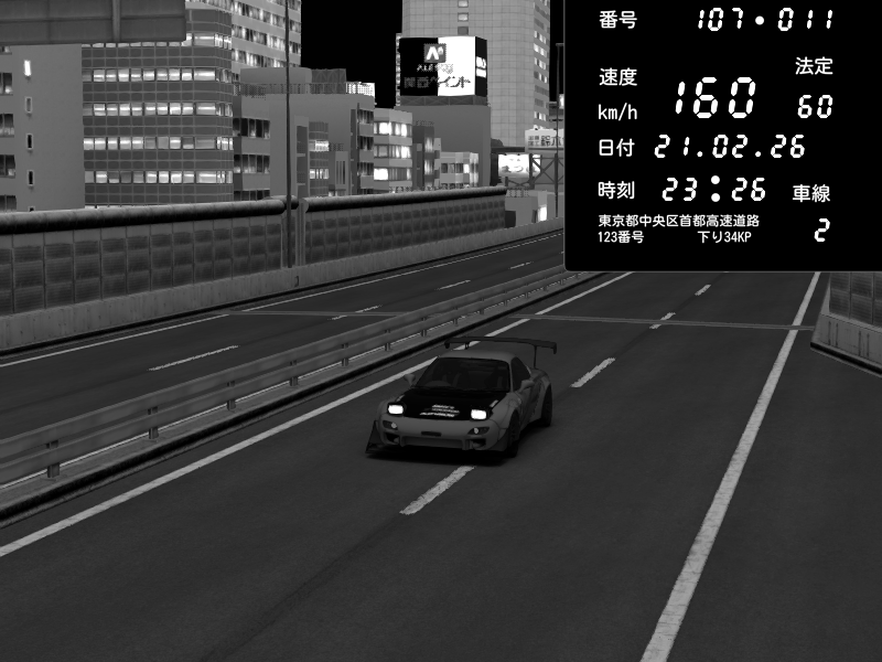 | 2026/02/19 23:45 | C1内回り 京橋 | 112 / 60 km/h | Honda S2000 Turbo GT1 Amuse (AP1) | CAPTURE |